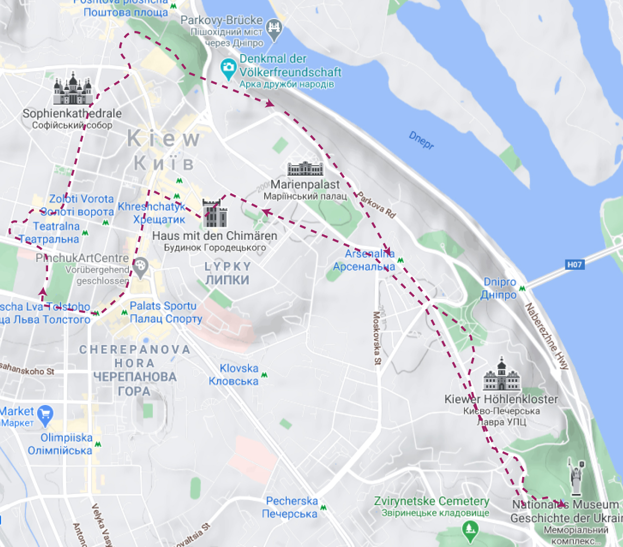 Mit dem Auto können Sie sich schnell und bequem in der Stadt bewegen und weit voneinander entfernte Sehenswürdigkeiten sehen. Wir bieten unseren Gästen einen kurzen Spaziergang durch das historische Viertel der Oberstadt (der Ort, an dem Kiew vor 1500 Jahren entstand). Wenn Sie möchten, besuchen Sie Podil und dann fahren wir durch das Verwaltungszentrum der Stadt zur Lavra und zum Mutterlanddenkmal.